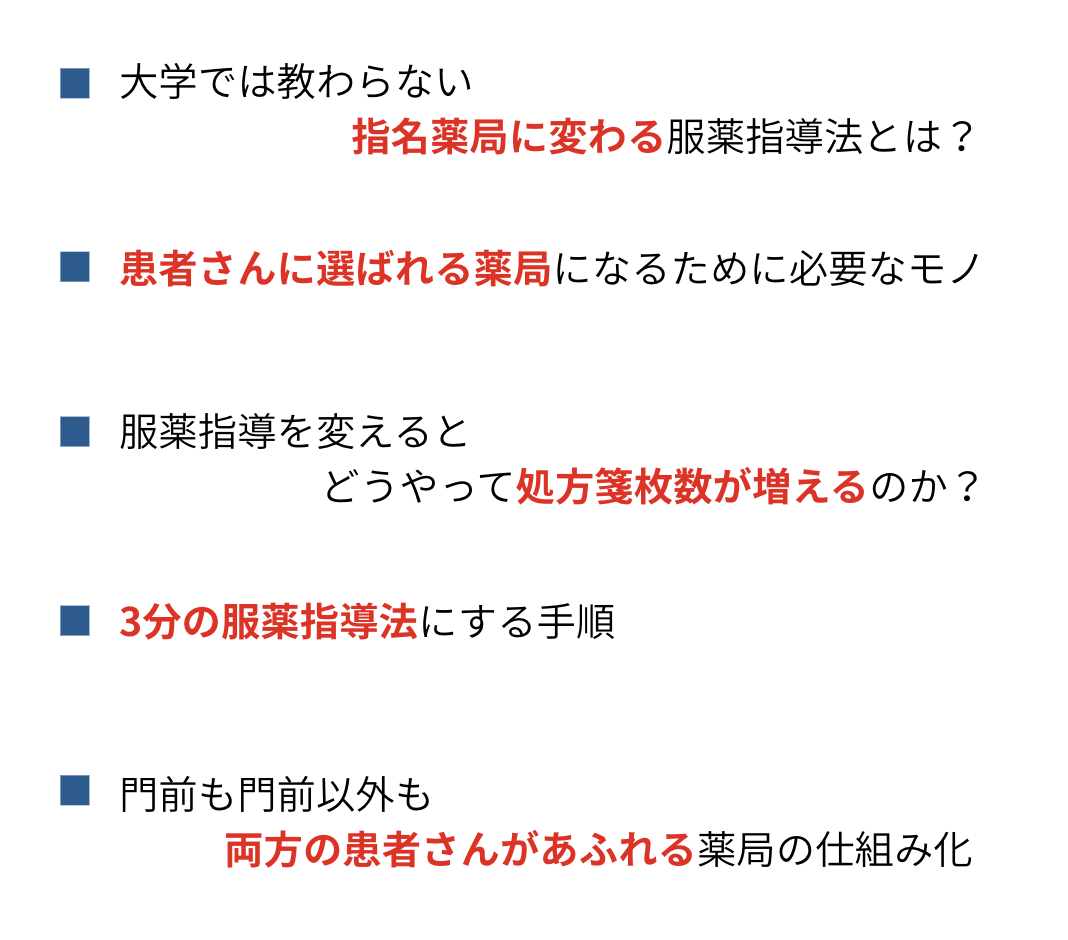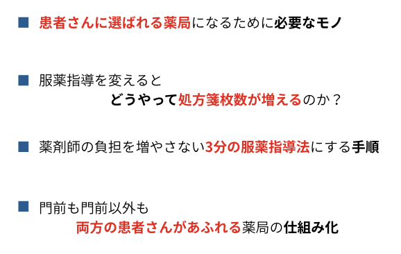 患者に選ばれる3分の服薬指導を行ってきた結果、16年間業績低下なしの薬局になりました。